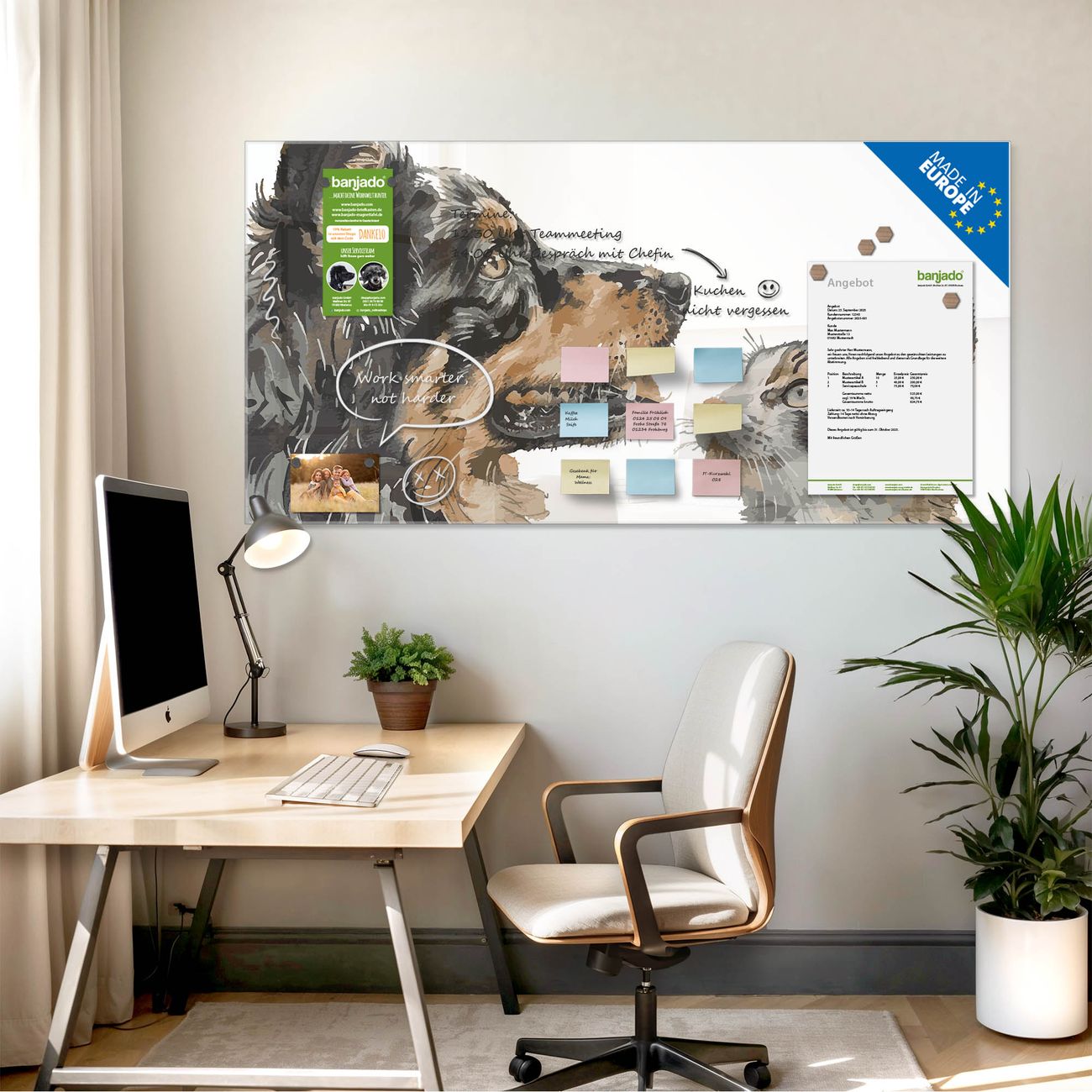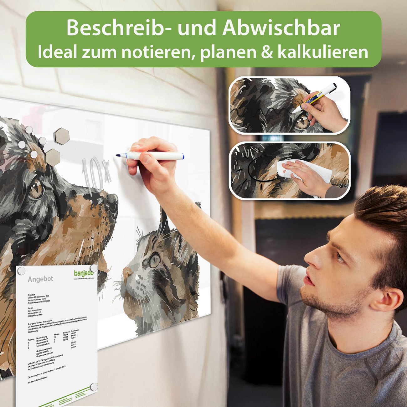 Die banjado Glas Magnettafel mit dem Motiv Motiv Tierische Begegnung verbindet Funktionalität mit Stil. Sie ersetzt das Zettelchaos durch klare Strukturen und bringt dabei eine warme, natürliche Atmosphäre in Ihr Zuhause. Ob im Büro, in der Küche oder im Eingangsbereich - dieses Design-Board zieht Blicke an und sorgt für Ordnung mit Charakter.