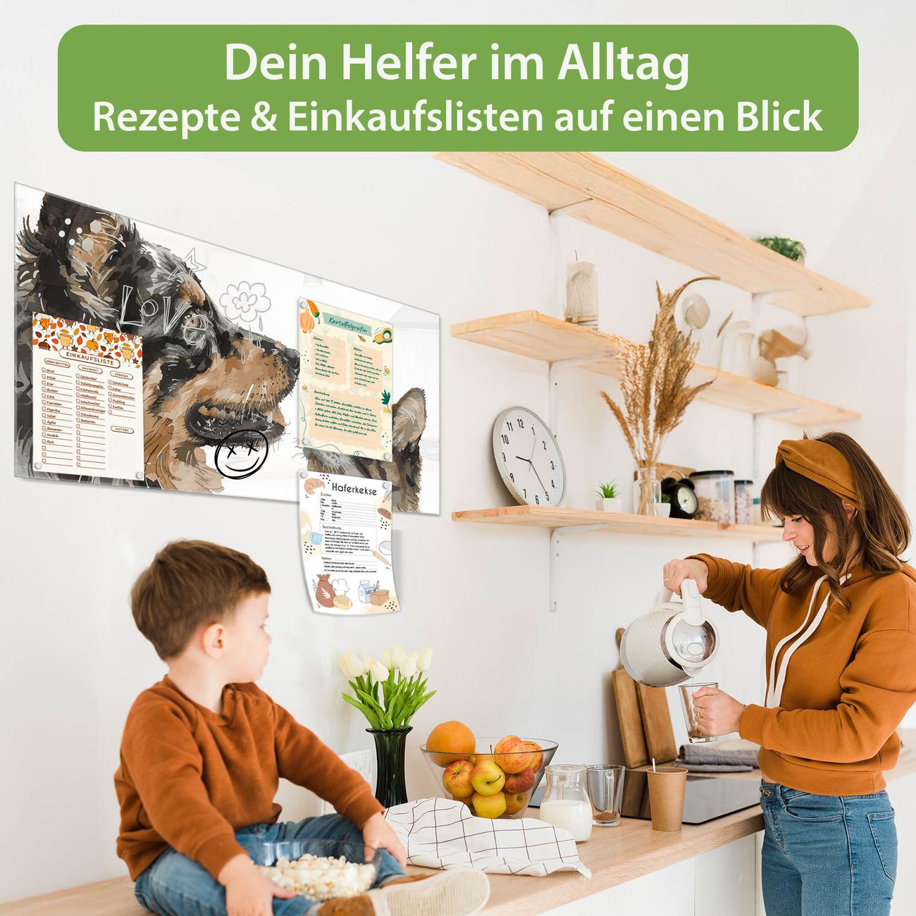 Ein Stück Design, das Ihren Alltag organisiert. Schreiben, heften, inspirieren - alles an einem Ort. Qualität, die man spürt. Montage leicht gemacht. Handwerk mit Herz - veredelt in Sachsen. Einzigartiges Design mit Motiv Motiv Tierische Begegnung Beschreibbare Glasoberfläche, leicht zu reinigen Starke Magnetkraft durch Stahlrückwand Inklusive 4 Neodym-Magneten Flexible Montageoptionen Handveredelt in Sachsen - Qualität, die bleibt
