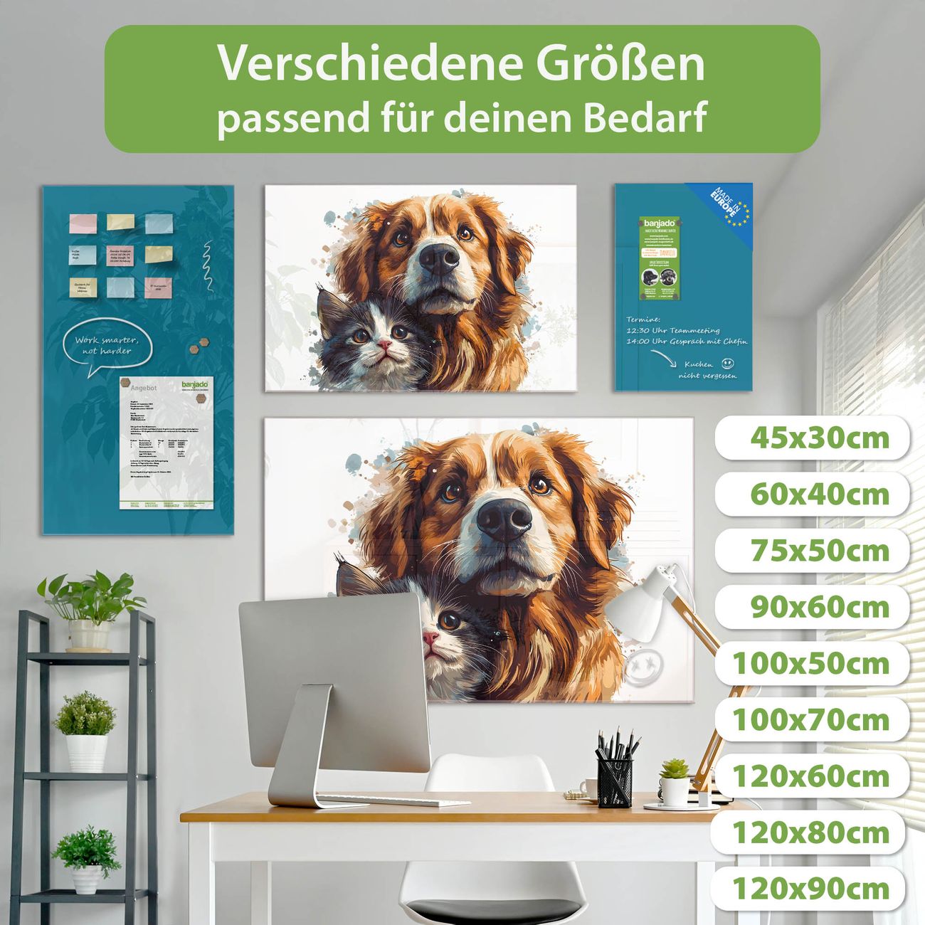 Jede Glas Magnettafel wird in unserer Werkstatt von Hand gefertigt und sorgfältig geprüft. So erhalten Sie ein echtes Qualitätsprodukt, das Funktion und Ästhetik perfekt vereint.?? Warum banjado?