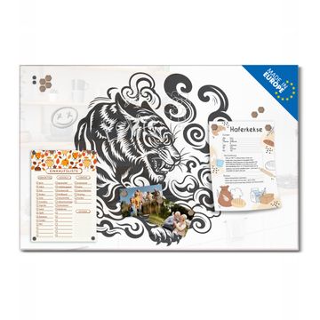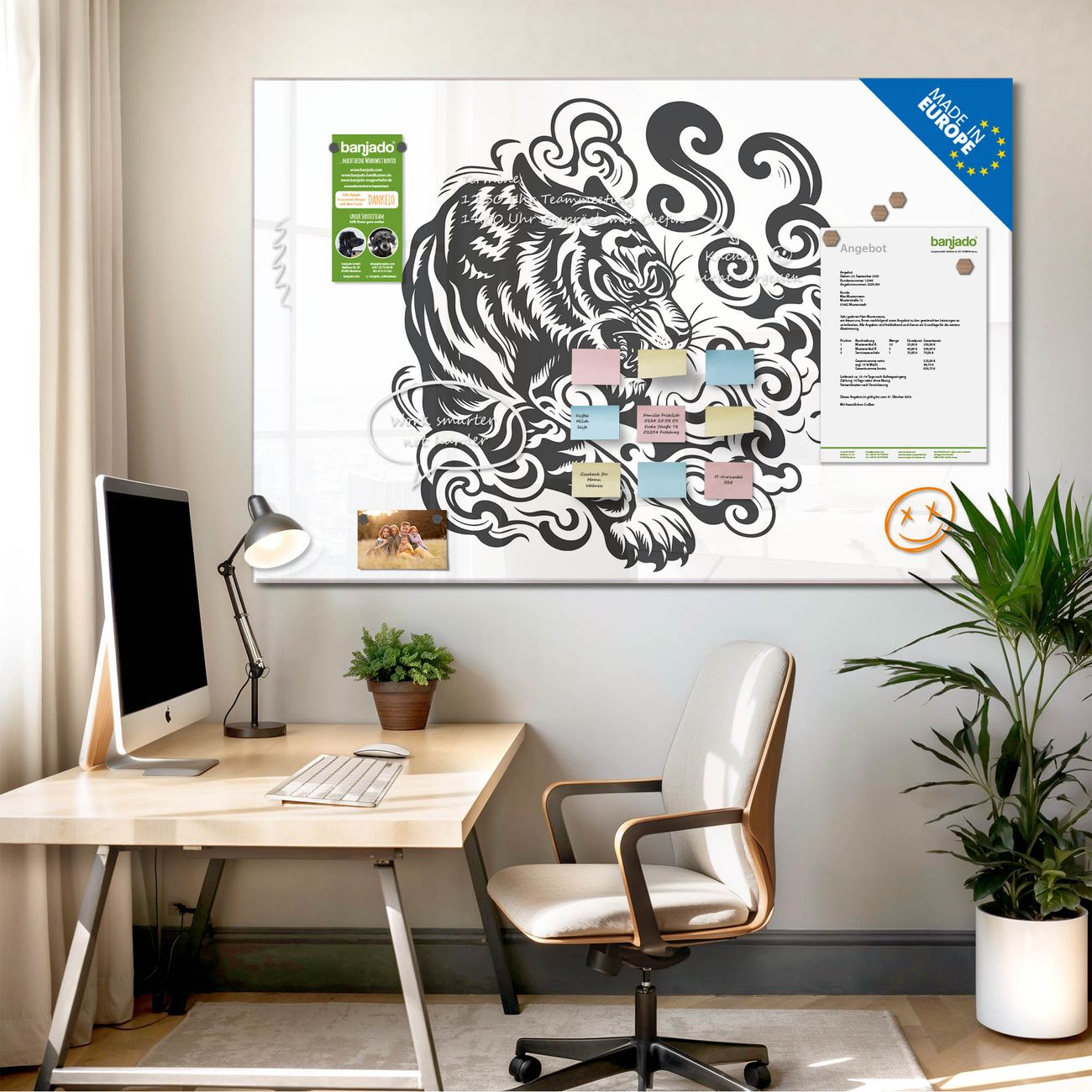 Die banjado Glas Magnettafel mit dem Motiv Motiv Tiger Illustration verbindet Funktionalität mit Stil. Sie ersetzt das Zettelchaos durch klare Strukturen und bringt dabei eine warme, natürliche Atmosphäre in Ihr Zuhause. Ob im Büro, in der Küche oder im Eingangsbereich - dieses Design-Board zieht Blicke an und sorgt für Ordnung mit Charakter.