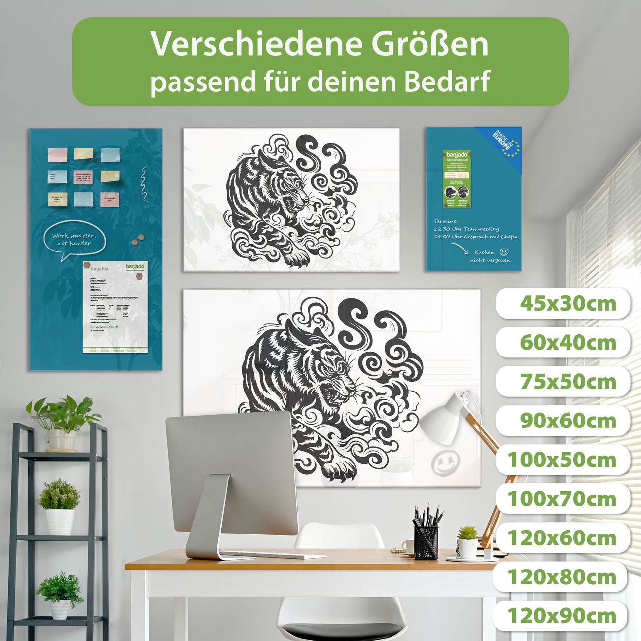 Ein Stück Design, das Ihren Alltag organisiert. Schreiben, heften, inspirieren - alles an einem Ort. Qualität, die man spürt. Montage leicht gemacht. Handwerk mit Herz - veredelt in Sachsen. Einzigartiges Design mit Motiv Motiv Tiger Illustration Beschreibbare Glasoberfläche, leicht zu reinigen Starke Magnetkraft durch Stahlrückwand Inklusive 4 Neodym-Magneten Flexible Montageoptionen Handveredelt in Sachsen - Qualität, die bleibt