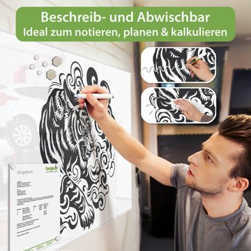 Jede Glas Magnettafel wird in unserer Werkstatt von Hand gefertigt und sorgfältig geprüft. So erhalten Sie ein echtes Qualitätsprodukt, das Funktion und Ästhetik perfekt vereint.?? Warum banjado?