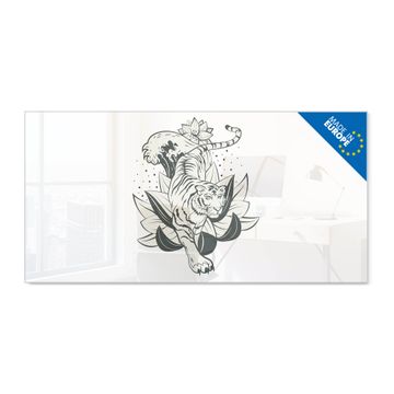 Glas Magnettafel im Querformat Motiv Tiger im Blumenmeer