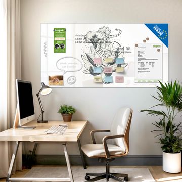 Auf der glatten Glasoberfläche lassen sich Termine, Rezepte oder Notizen ganz einfach mit Kreidestiften festhalten und rückstandslos entfernen. Starke Neodym-Magnete halten Ihre wichtigsten Erinnerungen sicher an Ort und Stelle. So entsteht Ihre ganz persönliche Ideenwand - jeden Tag neu.