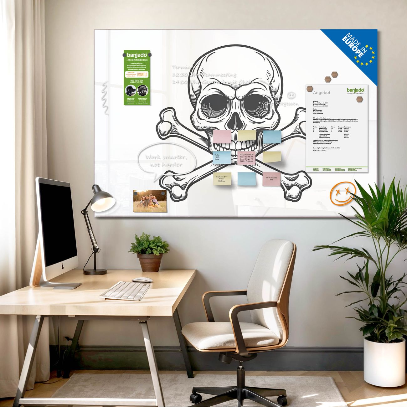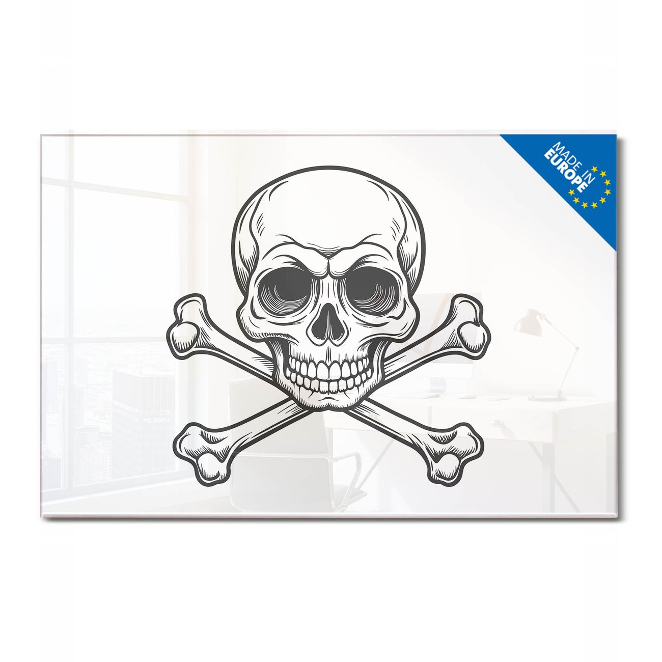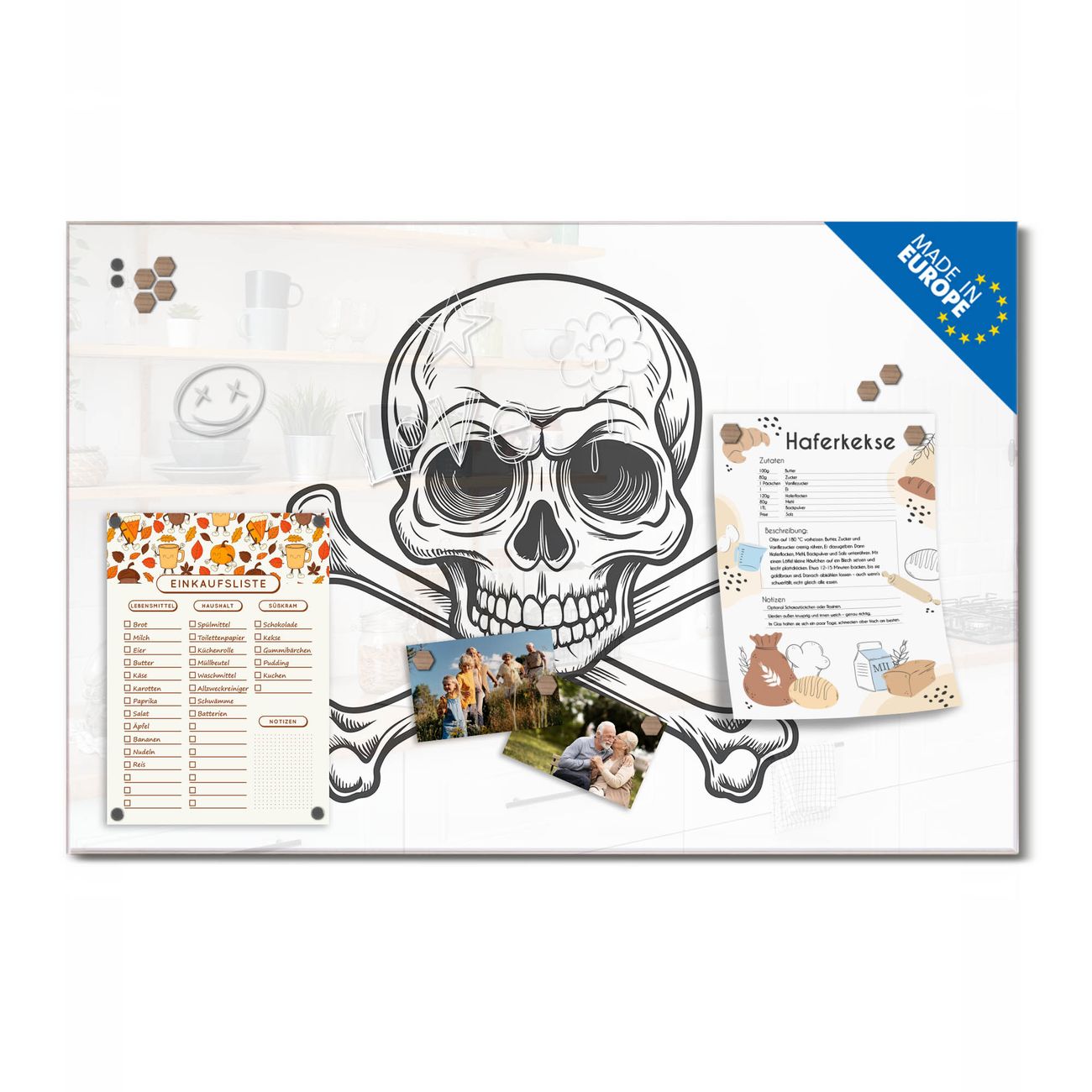 Glas Magnettafel im Querformat Motiv Totenkopfsymbol