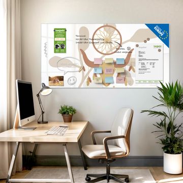 Auf der glatten Glasoberfläche lassen sich Termine, Rezepte oder Notizen ganz einfach mit Kreidestiften festhalten und rückstandslos entfernen. Starke Neodym-Magnete halten Ihre wichtigsten Erinnerungen sicher an Ort und Stelle. So entsteht Ihre ganz persönliche Ideenwand - jeden Tag neu.