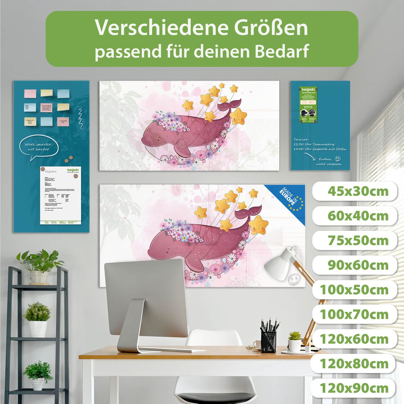Jede Glas Magnettafel wird in unserer Werkstatt von Hand gefertigt und sorgfältig geprüft. So erhalten Sie ein echtes Qualitätsprodukt, das Funktion und Ästhetik perfekt vereint.?? Warum banjado?