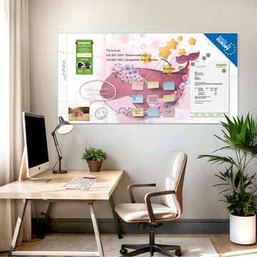 Die banjado Glas Magnettafel mit dem Motiv Motiv Traumwal mit Sternen verbindet Funktionalität mit Stil. Sie ersetzt das Zettelchaos durch klare Strukturen und bringt dabei eine warme, natürliche Atmosphäre in Ihr Zuhause. Ob im Büro, in der Küche oder im Eingangsbereich - dieses Design-Board zieht Blicke an und sorgt für Ordnung mit Charakter.