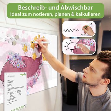 Auf der glatten Glasoberfläche lassen sich Termine, Rezepte oder Notizen ganz einfach mit Kreidestiften festhalten und rückstandslos entfernen. Starke Neodym-Magnete halten Ihre wichtigsten Erinnerungen sicher an Ort und Stelle. So entsteht Ihre ganz persönliche Ideenwand - jeden Tag neu.