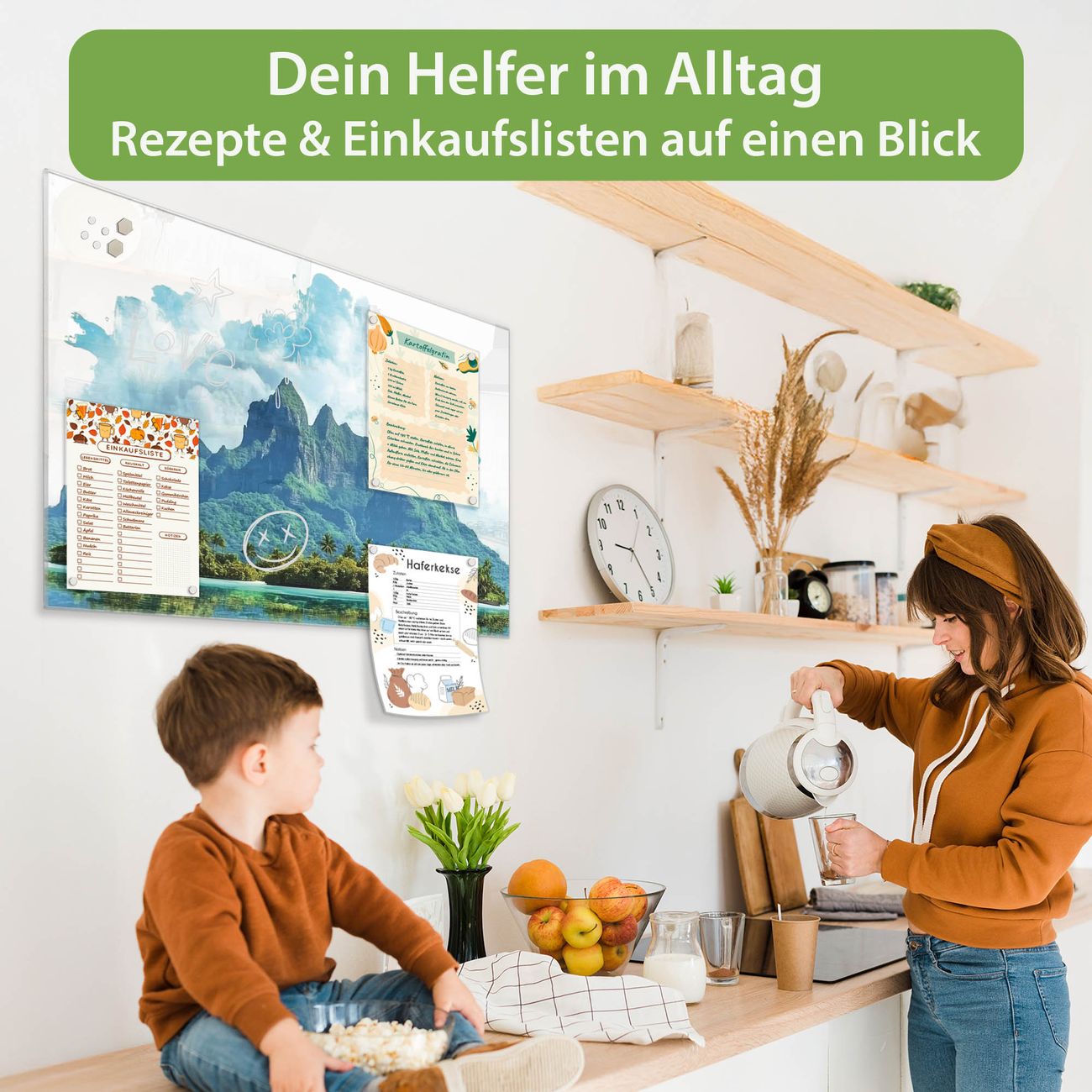 Auf der glatten Glasoberfläche lassen sich Termine, Rezepte oder Notizen ganz einfach mit Kreidestiften festhalten und rückstandslos entfernen. Starke Neodym-Magnete halten Ihre wichtigsten Erinnerungen sicher an Ort und Stelle. So entsteht Ihre ganz persönliche Ideenwand - jeden Tag neu.
