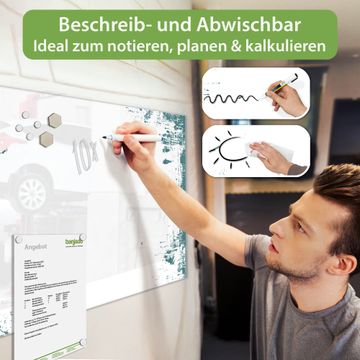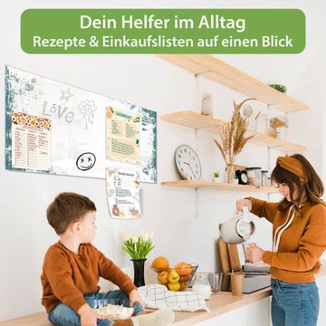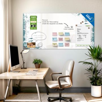 Auf der glatten Glasoberfläche lassen sich Termine, Rezepte oder Notizen ganz einfach mit Kreidestiften festhalten und rückstandslos entfernen. Starke Neodym-Magnete halten Ihre wichtigsten Erinnerungen sicher an Ort und Stelle. So entsteht Ihre ganz persönliche Ideenwand - jeden Tag neu.