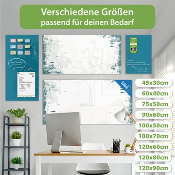 Ein Stück Design, das Ihren Alltag organisiert. Schreiben, heften, inspirieren - alles an einem Ort. Qualität, die man spürt. Montage leicht gemacht. Handwerk mit Herz - veredelt in Sachsen. Einzigartiges Design mit Motiv Motiv Türkis-Weiße Rahmenstruktur Beschreibbare Glasoberfläche, leicht zu reinigen Starke Magnetkraft durch Stahlrückwand Inklusive 4 Neodym-Magneten Flexible Montageoptionen Handveredelt in Sachsen - Qualität, die bleibt