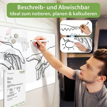 Auf der glatten Glasoberfläche lassen sich Termine, Rezepte oder Notizen ganz einfach mit Kreidestiften festhalten und rückstandslos entfernen. Starke Neodym-Magnete halten Ihre wichtigsten Erinnerungen sicher an Ort und Stelle. So entsteht Ihre ganz persönliche Ideenwand - jeden Tag neu.