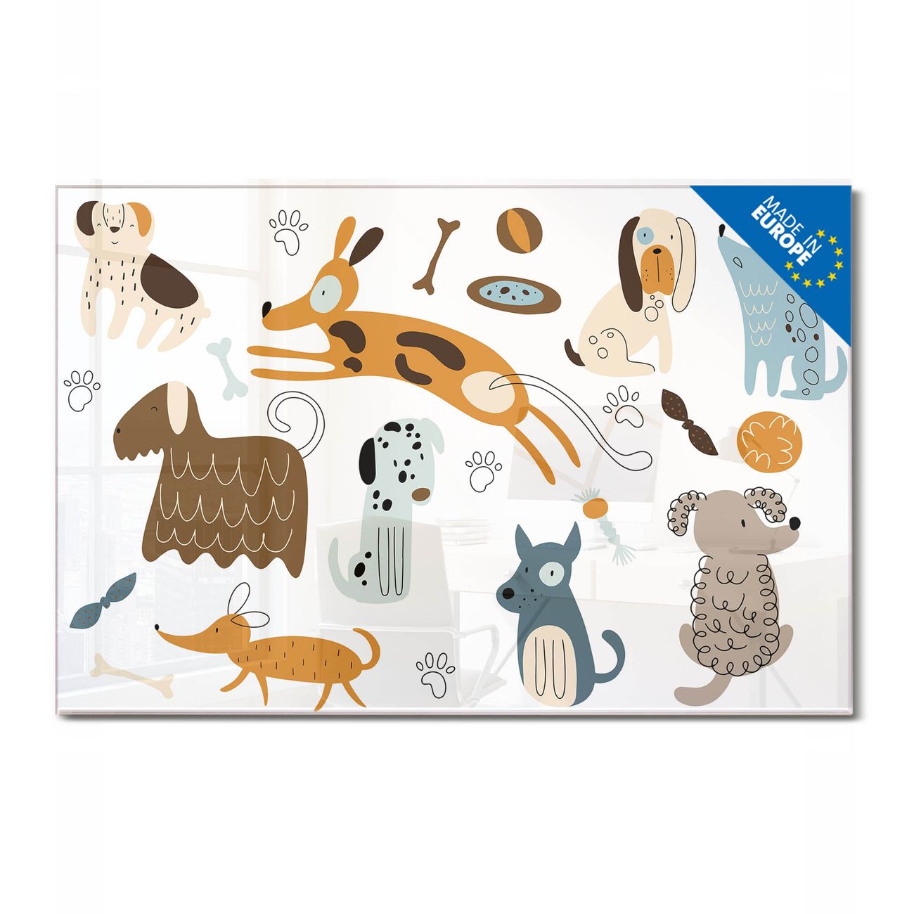 Glas Magnettafel im Querformat Motiv Verspielte Hunde-Illustration