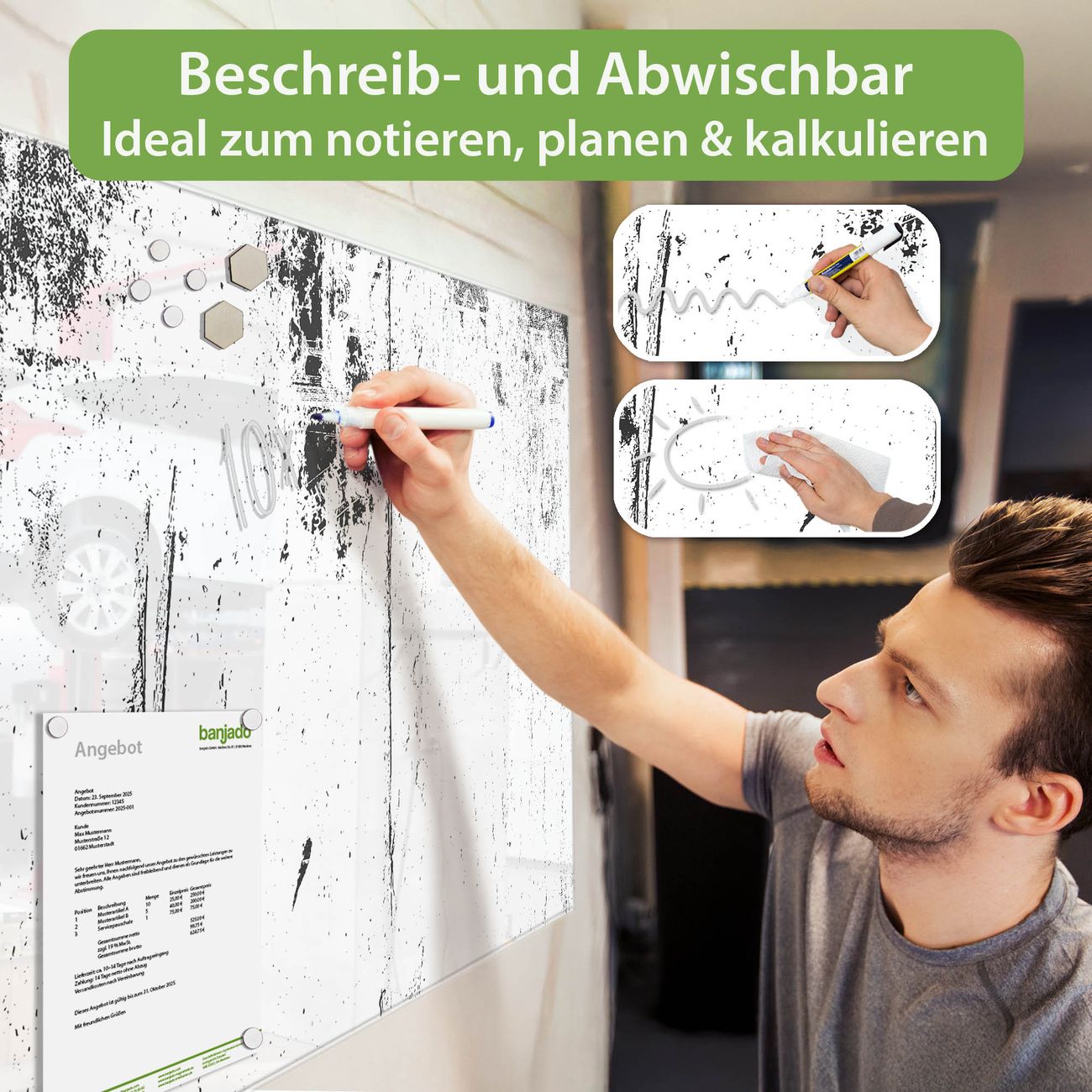 Bitte beachten Sie, dass ausschliessliche spezielle Magnete an der Glastafel haften. Wir empfehlen banjado Neodym Magnete, diese sind durch uns auf Wirksamkeit geprüft.