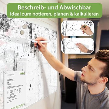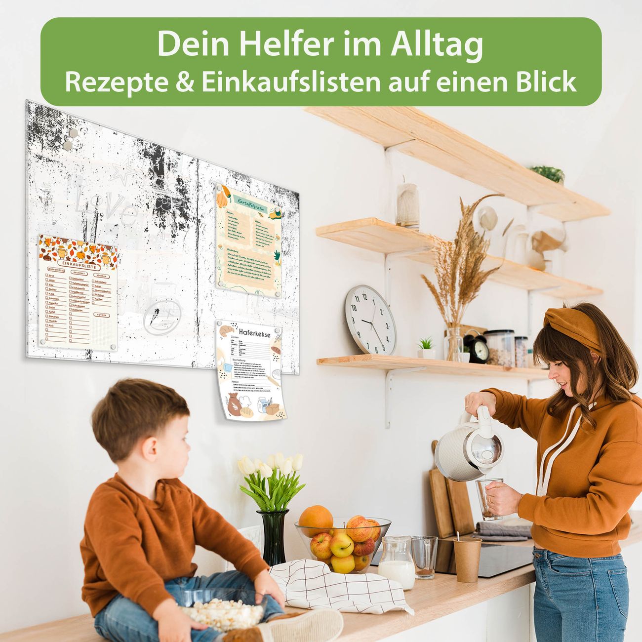 Ein Stück Design, das Ihren Alltag organisiert. Schreiben, heften, inspirieren - alles an einem Ort. Qualität, die man spürt. Montage leicht gemacht. Handwerk mit Herz - veredelt in Sachsen. Einzigartiges Design mit Motiv Motiv Verwitterte Wand Beschreibbare Glasoberfläche, leicht zu reinigen Starke Magnetkraft durch Stahlrückwand Inklusive 4 Neodym-Magneten Flexible Montageoptionen Handveredelt in Sachsen - Qualität, die bleibt