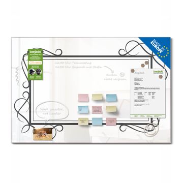 Die banjado Glas Magnettafel mit dem Motiv Motiv Verzierter Herzrahmen verbindet Funktionalität mit Stil. Sie ersetzt das Zettelchaos durch klare Strukturen und bringt dabei eine warme, natürliche Atmosphäre in Ihr Zuhause. Ob im Büro, in der Küche oder im Eingangsbereich - dieses Design-Board zieht Blicke an und sorgt für Ordnung mit Charakter.