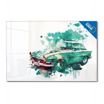 Glas Magnettafel im Querformat Motiv Vintage Auto Aquarell