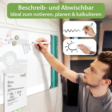Gefertigt aus gehärtetem Sicherheitsglas mit einer magnetischen Rückwand aus Stahl überzeugt diese Magnettafel durch Stabilität und Langlebigkeit. Die Oberfläche bleibt dauerhaft brillant und pflegeleicht, selbst bei täglicher Nutzung.