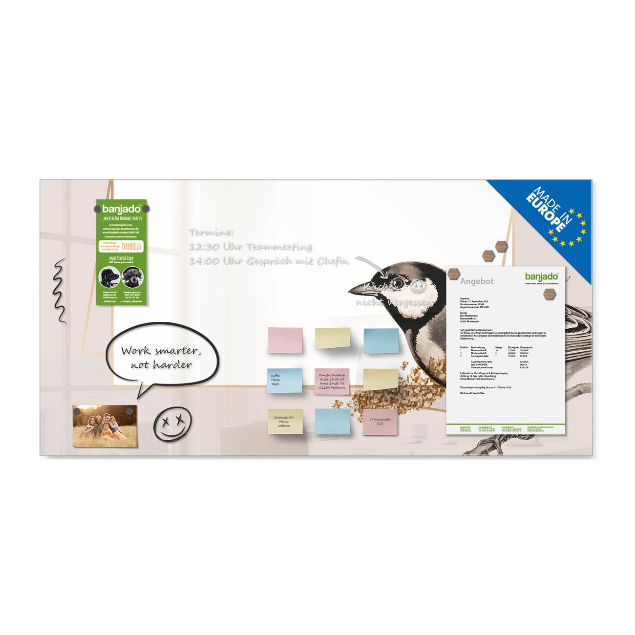 Glas Magnettafel im Querformat Motiv Vogel auf Zweig 2