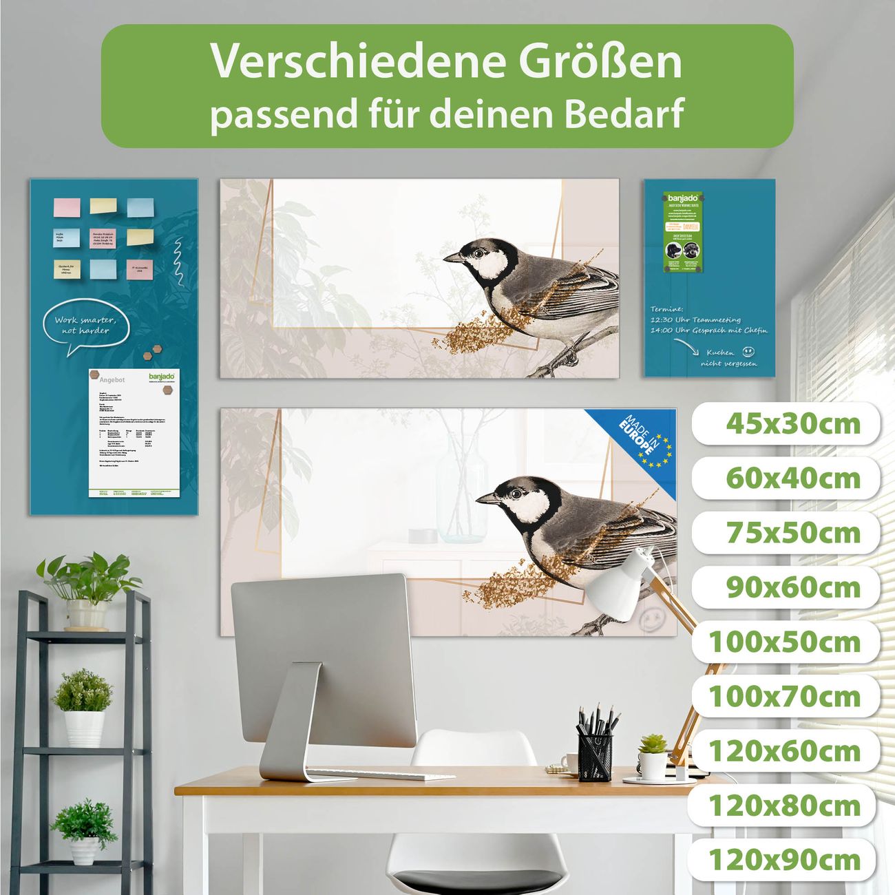 Die banjado Glas Magnettafel mit dem Motiv Motiv Vogel auf Zweig 2 verbindet Funktionalität mit Stil. Sie ersetzt das Zettelchaos durch klare Strukturen und bringt dabei eine warme, natürliche Atmosphäre in Ihr Zuhause. Ob im Büro, in der Küche oder im Eingangsbereich - dieses Design-Board zieht Blicke an und sorgt für Ordnung mit Charakter.