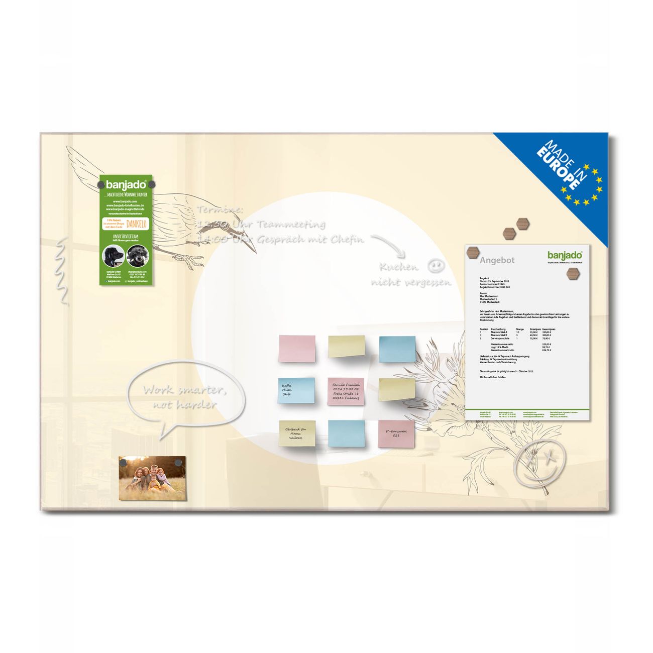 Glas Magnettafel im Querformat Motiv Vogel und Blüte