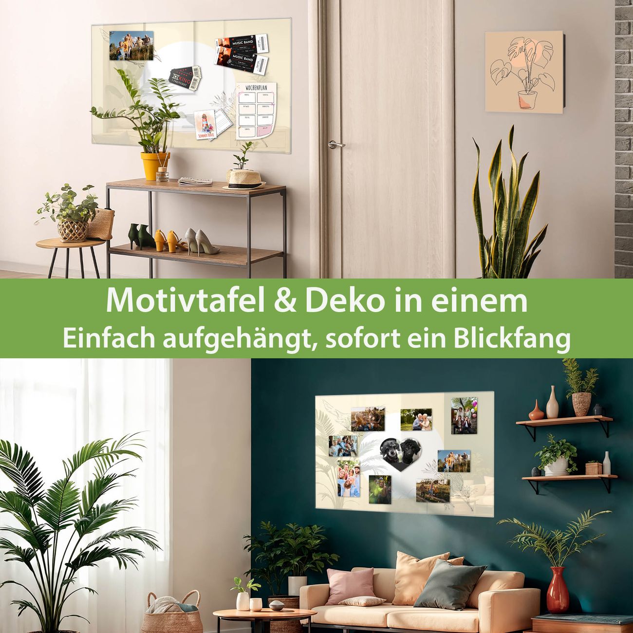 Auf der glatten Glasoberfläche lassen sich Termine, Rezepte oder Notizen ganz einfach mit Kreidestiften festhalten und rückstandslos entfernen. Starke Neodym-Magnete halten Ihre wichtigsten Erinnerungen sicher an Ort und Stelle. So entsteht Ihre ganz persönliche Ideenwand - jeden Tag neu.