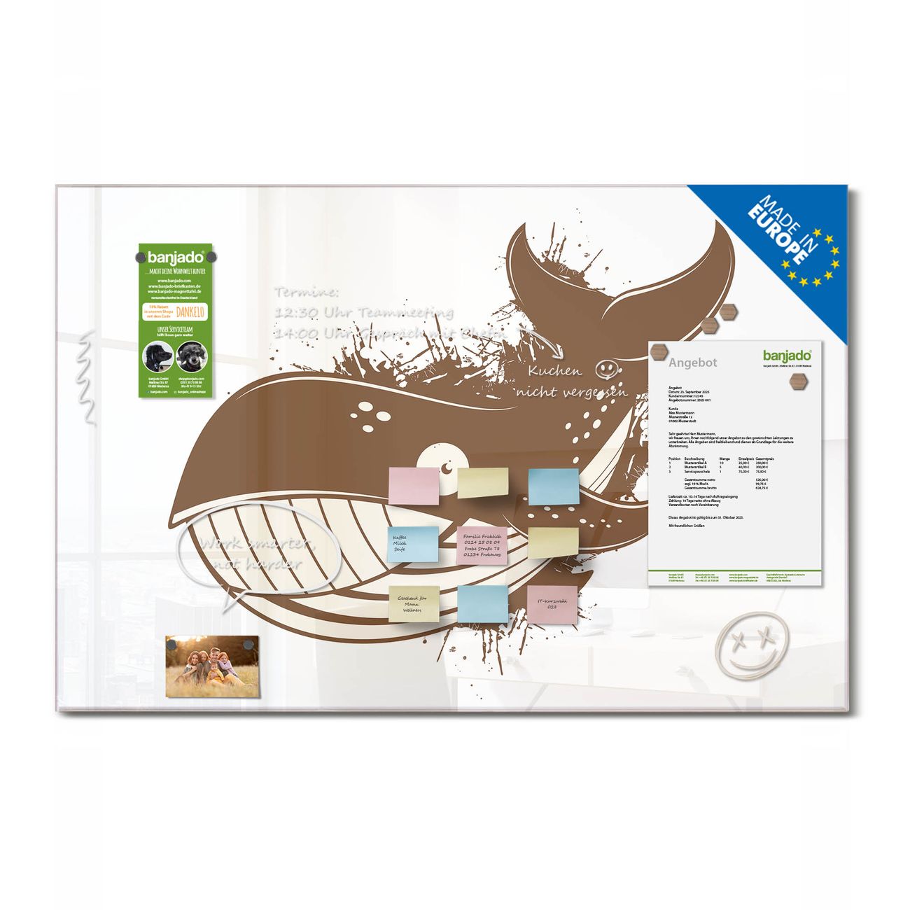 Die banjado Glas Magnettafel mit dem Motiv Motiv Wal Comic 2 verbindet Funktionalität mit Stil. Sie ersetzt das Zettelchaos durch klare Strukturen und bringt dabei eine warme, natürliche Atmosphäre in Ihr Zuhause. Ob im Büro, in der Küche oder im Eingangsbereich - dieses Design-Board zieht Blicke an und sorgt für Ordnung mit Charakter.