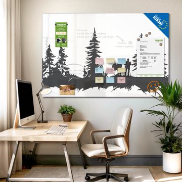 Die banjado Glas Magnettafel mit dem Motiv Motiv Waldabenteuer Silhouette verbindet Funktionalität mit Stil. Sie ersetzt das Zettelchaos durch klare Strukturen und bringt dabei eine warme, natürliche Atmosphäre in Ihr Zuhause. Ob im Büro, in der Küche oder im Eingangsbereich - dieses Design-Board zieht Blicke an und sorgt für Ordnung mit Charakter.