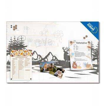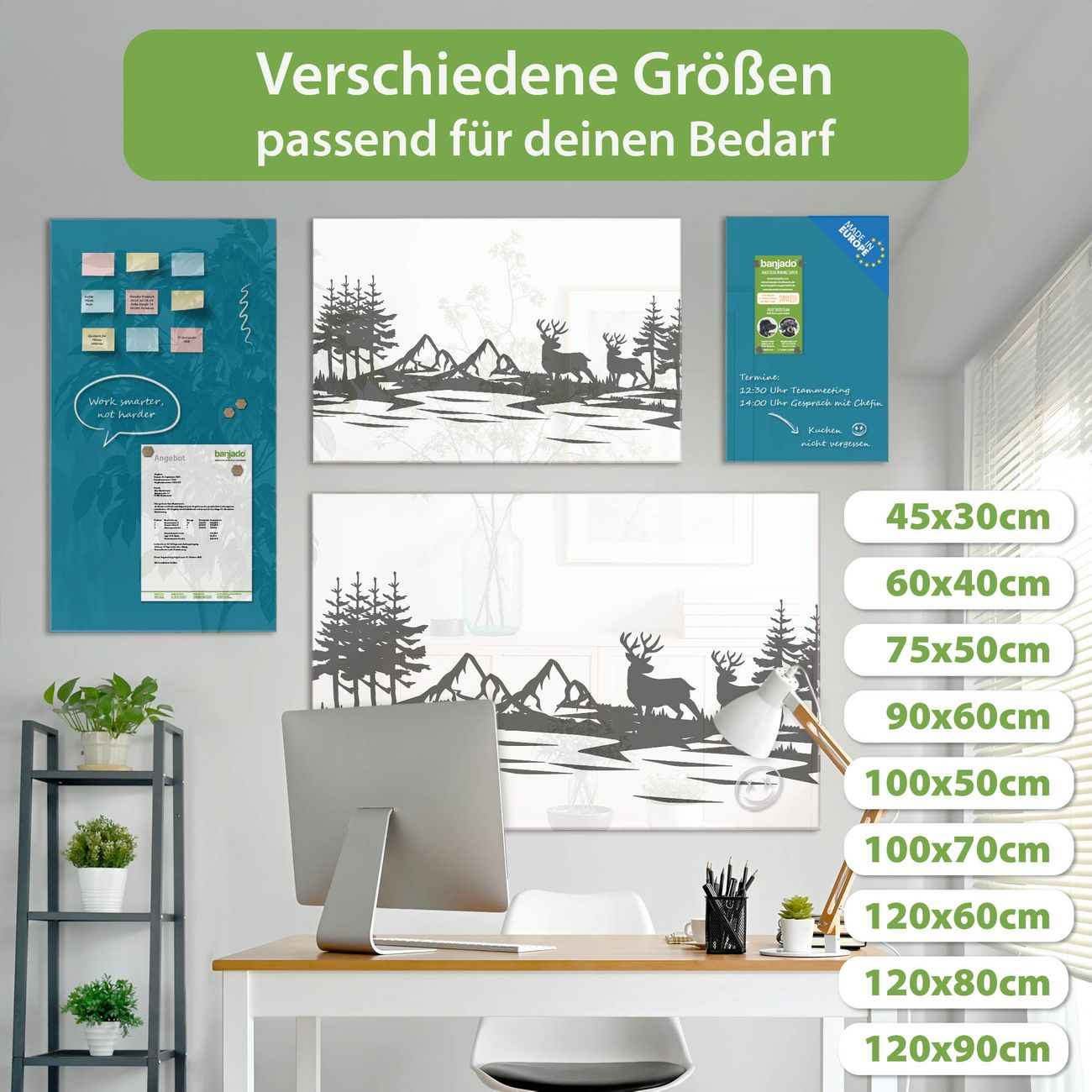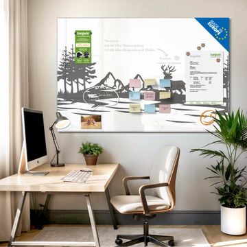 Ein Stück Design, das Ihren Alltag organisiert. Schreiben, heften, inspirieren - alles an einem Ort. Qualität, die man spürt. Montage leicht gemacht. Handwerk mit Herz - veredelt in Sachsen. Einzigartiges Design mit Motiv Motiv Waldidylle mit Hirschen Beschreibbare Glasoberfläche, leicht zu reinigen Starke Magnetkraft durch Stahlrückwand Inklusive 4 Neodym-Magneten Flexible Montageoptionen Handveredelt in Sachsen - Qualität, die bleibt