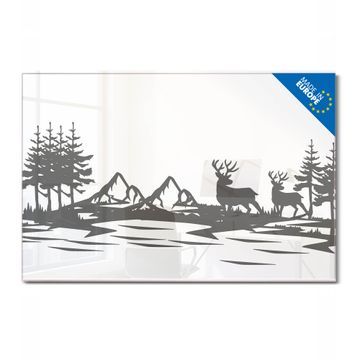 Glas Magnettafel im Querformat Motiv Waldidylle mit Hirschen