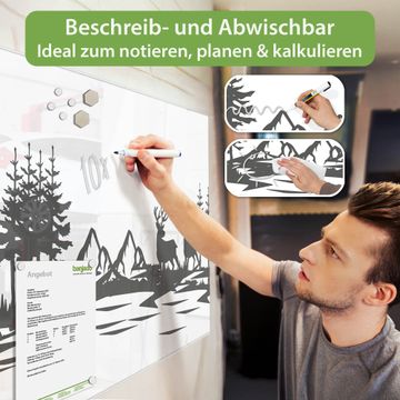 Die banjado Glas Magnettafel mit dem Motiv Motiv Waldidylle mit Hirschen verbindet Funktionalität mit Stil. Sie ersetzt das Zettelchaos durch klare Strukturen und bringt dabei eine warme, natürliche Atmosphäre in Ihr Zuhause. Ob im Büro, in der Küche oder im Eingangsbereich - dieses Design-Board zieht Blicke an und sorgt für Ordnung mit Charakter.
