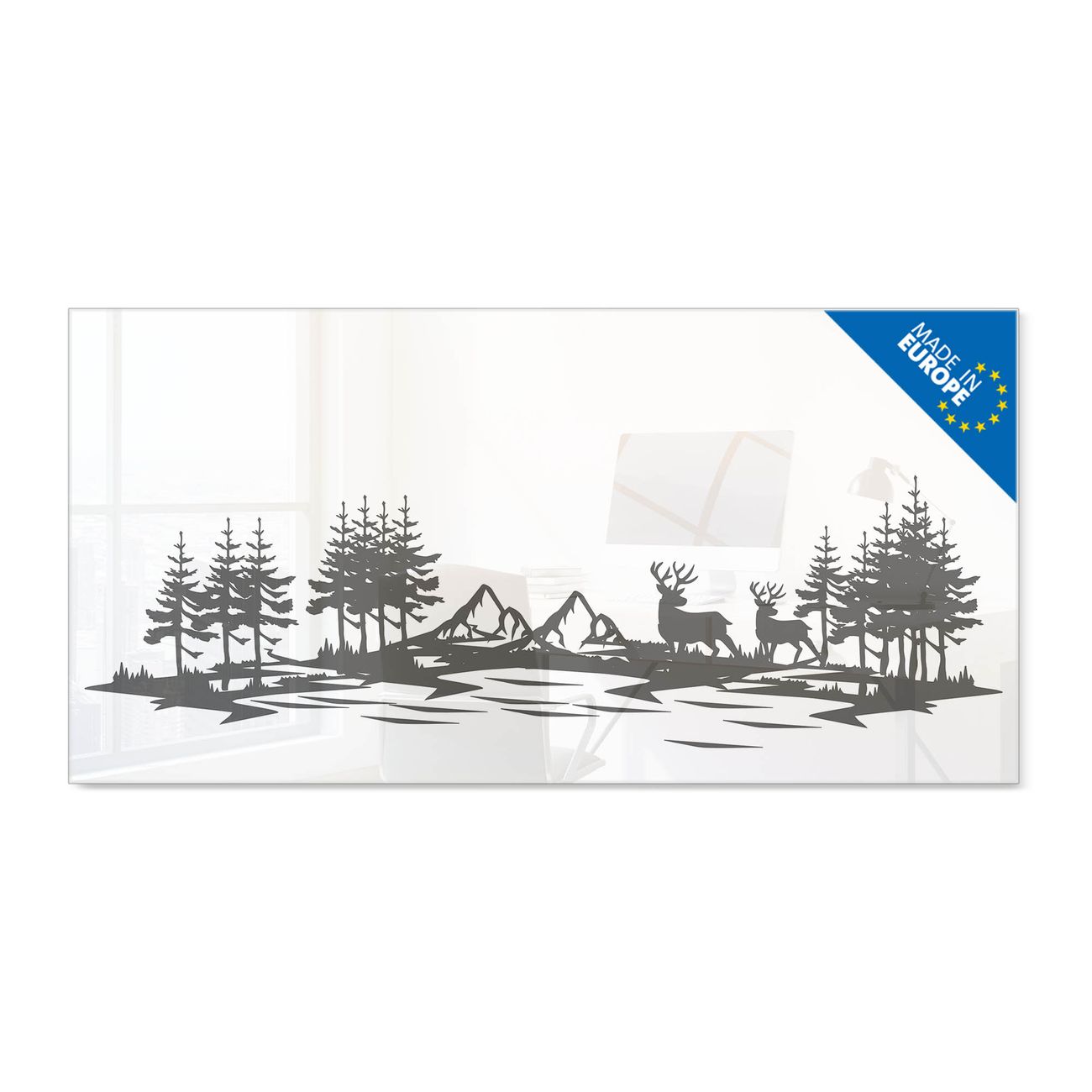 Glas Magnettafel im Querformat Motiv Waldidylle mit Hirschen