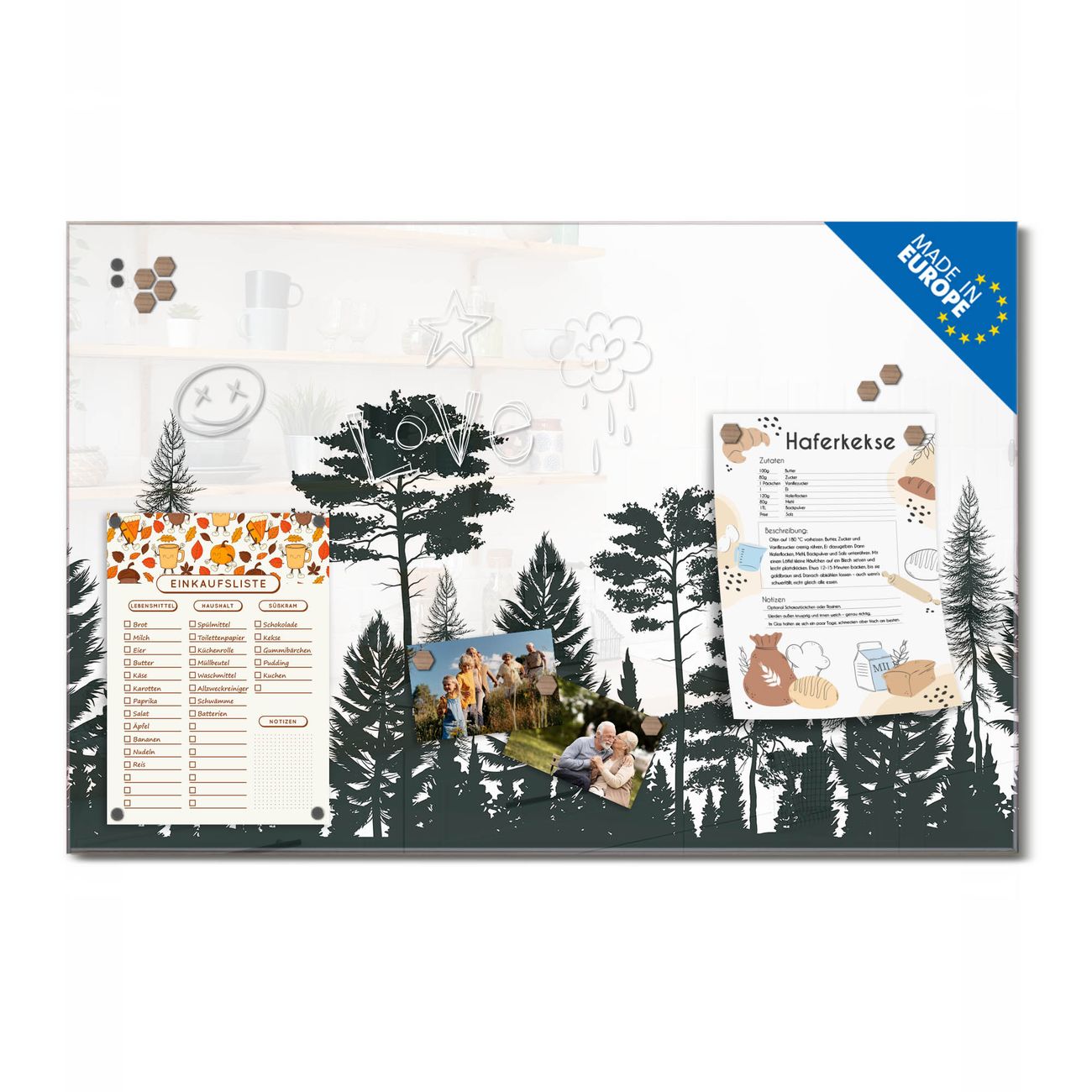 Glas Magnettafel im Querformat Motiv Waldsilhouette