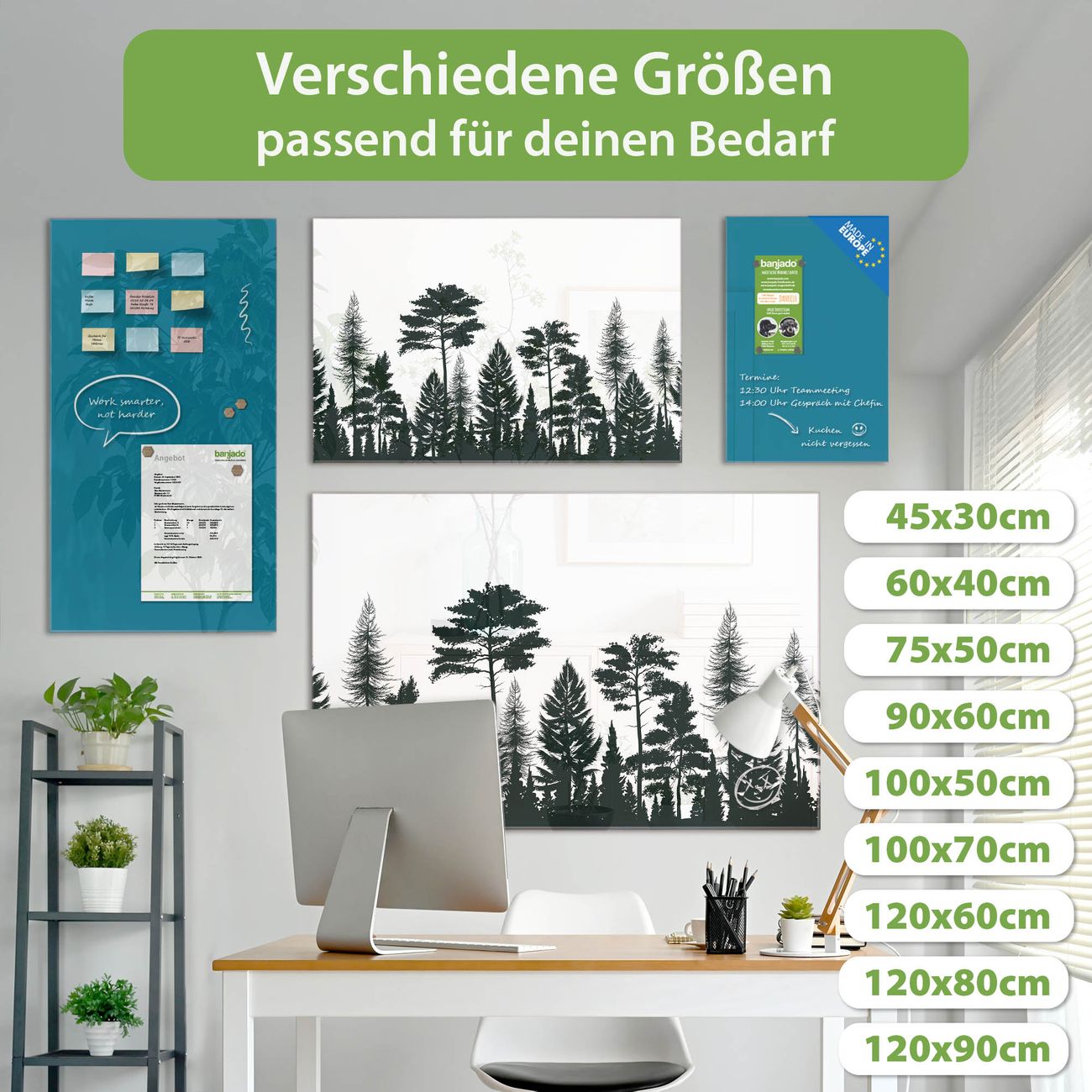 Ein Stück Design, das Ihren Alltag organisiert. Schreiben, heften, inspirieren - alles an einem Ort. Qualität, die man spürt. Montage leicht gemacht. Handwerk mit Herz - veredelt in Sachsen. Einzigartiges Design mit Motiv Motiv Waldsilhouette Beschreibbare Glasoberfläche, leicht zu reinigen Starke Magnetkraft durch Stahlrückwand Inklusive 4 Neodym-Magneten Flexible Montageoptionen Handveredelt in Sachsen - Qualität, die bleibt