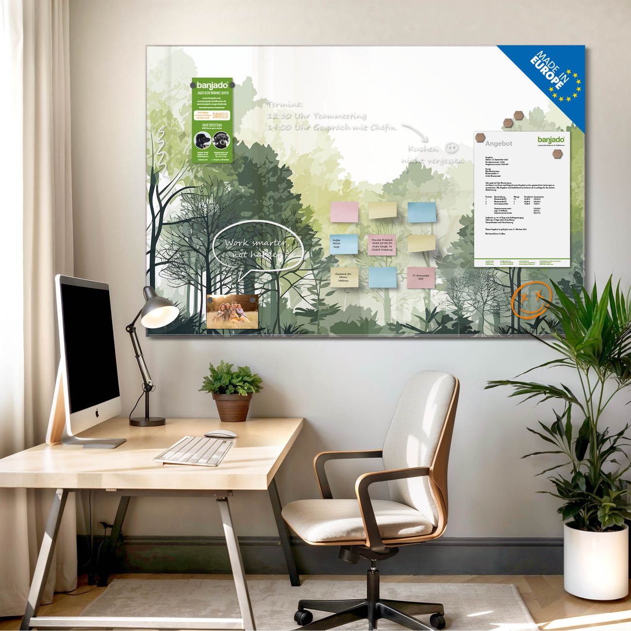 Die banjado Glas Magnettafel mit dem Motiv Motiv Waldszene verbindet Funktionalität mit Stil. Sie ersetzt das Zettelchaos durch klare Strukturen und bringt dabei eine warme, natürliche Atmosphäre in Ihr Zuhause. Ob im Büro, in der Küche oder im Eingangsbereich - dieses Design-Board zieht Blicke an und sorgt für Ordnung mit Charakter.