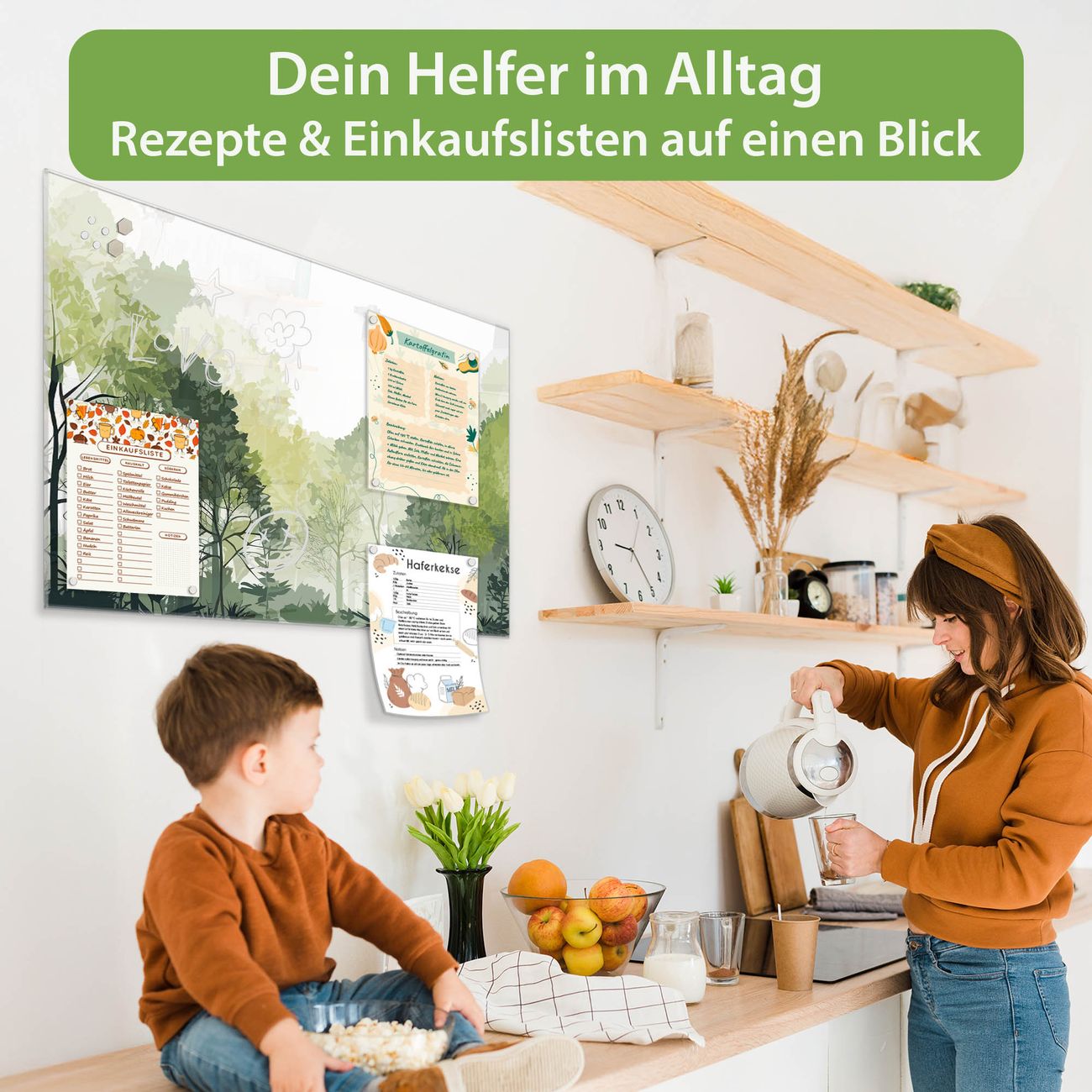 Ein Stück Design, das Ihren Alltag organisiert. Schreiben, heften, inspirieren - alles an einem Ort. Qualität, die man spürt. Montage leicht gemacht. Handwerk mit Herz - veredelt in Sachsen. Einzigartiges Design mit Motiv Motiv Waldszene Beschreibbare Glasoberfläche, leicht zu reinigen Starke Magnetkraft durch Stahlrückwand Inklusive 4 Neodym-Magneten Flexible Montageoptionen Handveredelt in Sachsen - Qualität, die bleibt
