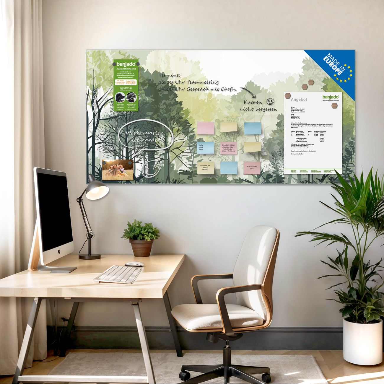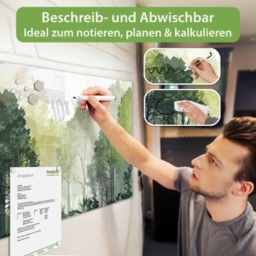 Die banjado Glas Magnettafel mit dem Motiv Motiv Waldszene verbindet Funktionalität mit Stil. Sie ersetzt das Zettelchaos durch klare Strukturen und bringt dabei eine warme, natürliche Atmosphäre in Ihr Zuhause. Ob im Büro, in der Küche oder im Eingangsbereich - dieses Design-Board zieht Blicke an und sorgt für Ordnung mit Charakter.