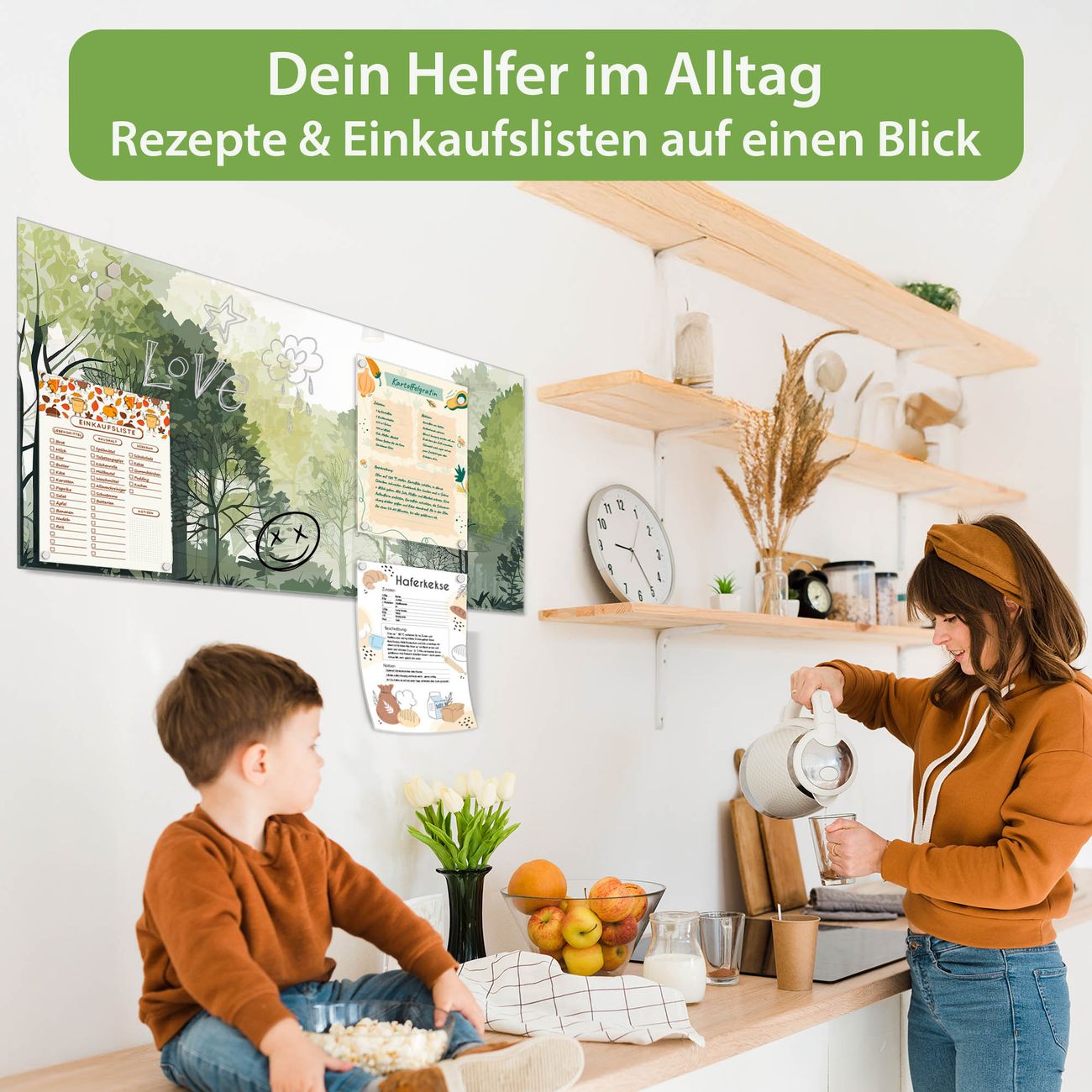 Ein Stück Design, das Ihren Alltag organisiert. Schreiben, heften, inspirieren - alles an einem Ort. Qualität, die man spürt. Montage leicht gemacht. Handwerk mit Herz - veredelt in Sachsen. Einzigartiges Design mit Motiv Motiv Waldszene Beschreibbare Glasoberfläche, leicht zu reinigen Starke Magnetkraft durch Stahlrückwand Inklusive 4 Neodym-Magneten Flexible Montageoptionen Handveredelt in Sachsen - Qualität, die bleibt