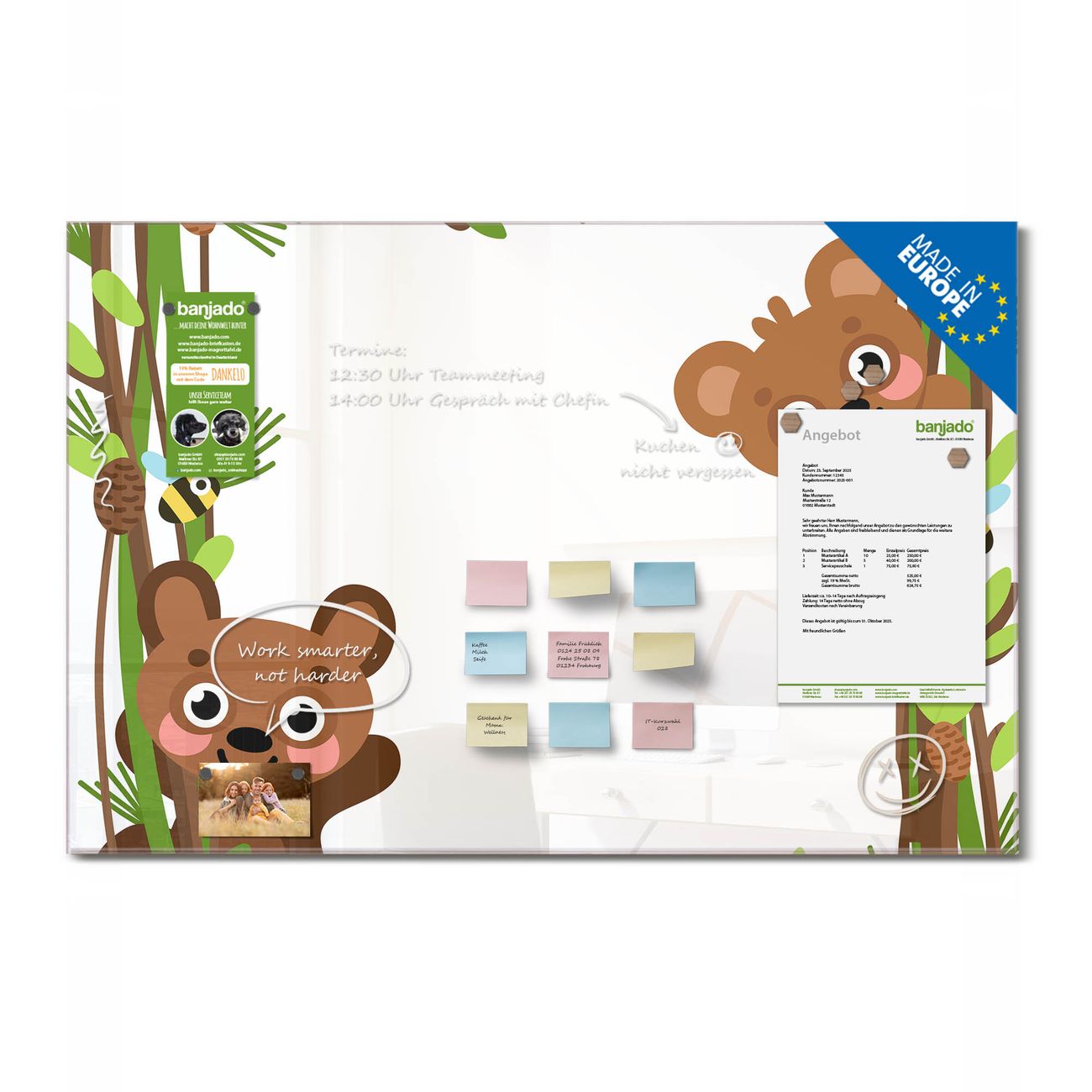 Glas Magnettafel im Querformat Motiv Rahmen Bären und Bienen