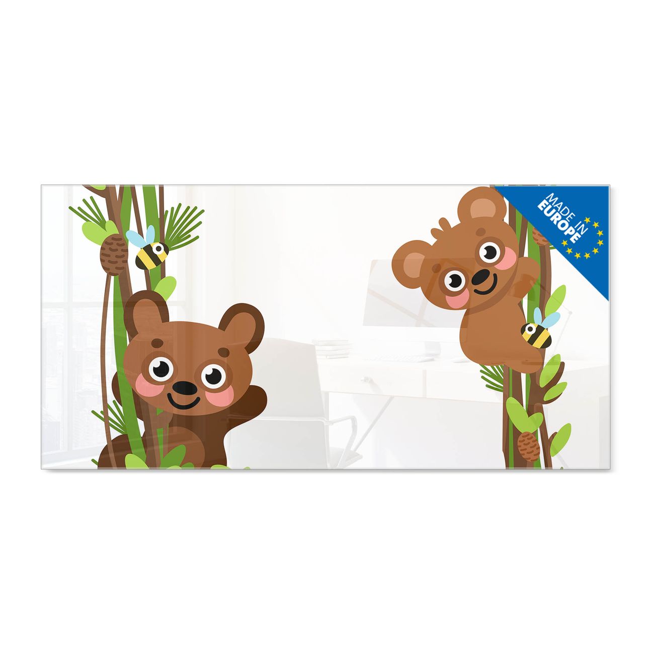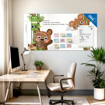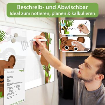 Glas Magnettafel im Querformat Motiv Rahmen Bären und Bienen