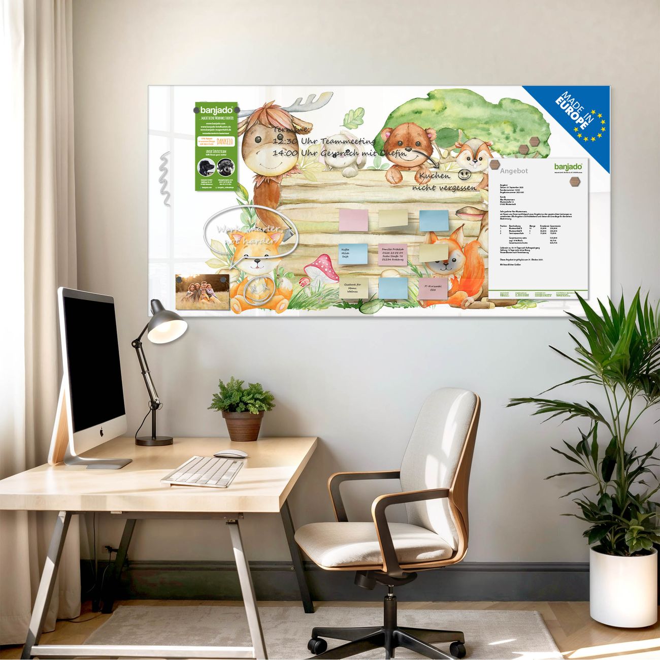 Glas Magnettafel im Querformat Motiv Waldtiere Abenteuer