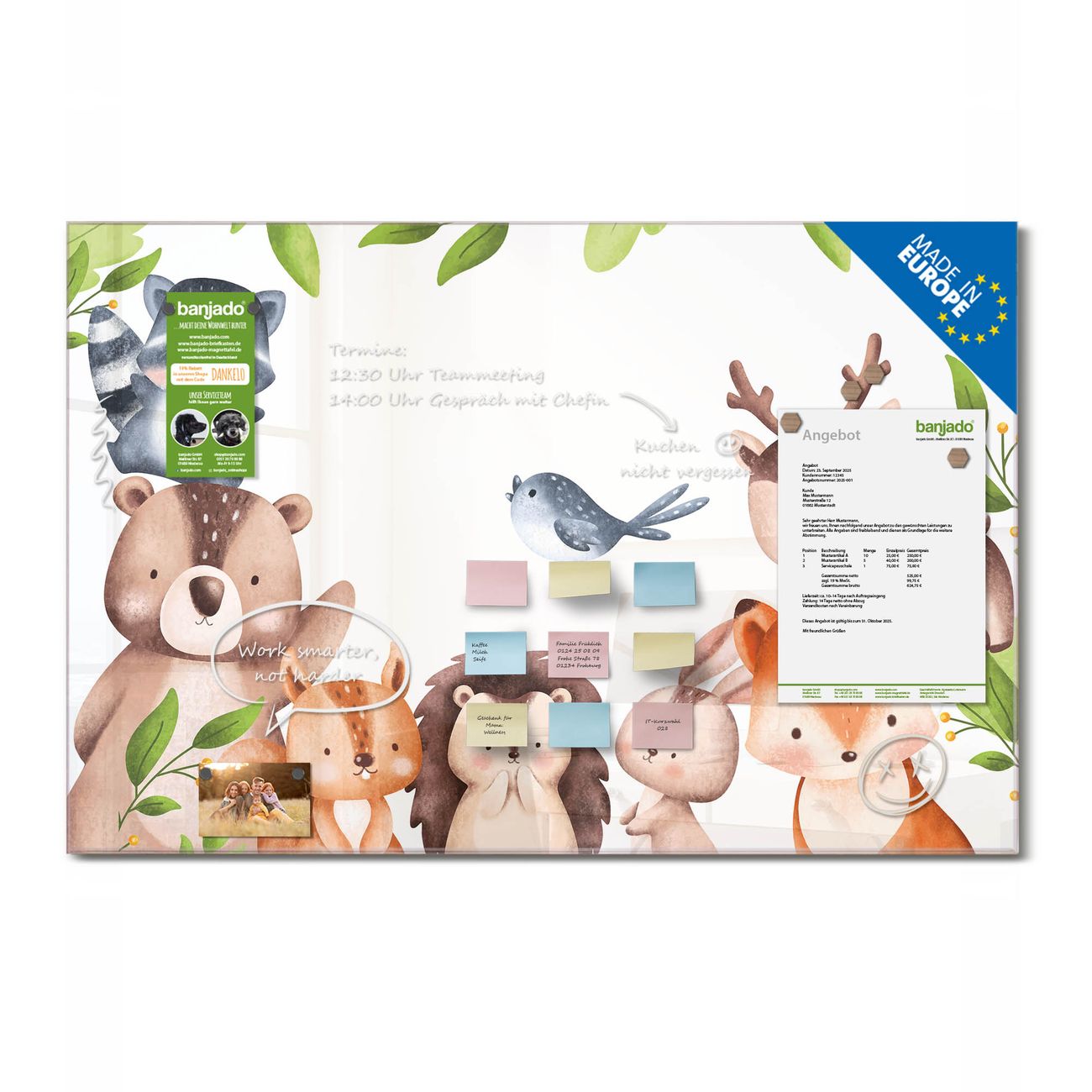 Glas Magnettafel im Querformat Motiv Waldtier Freunde 2