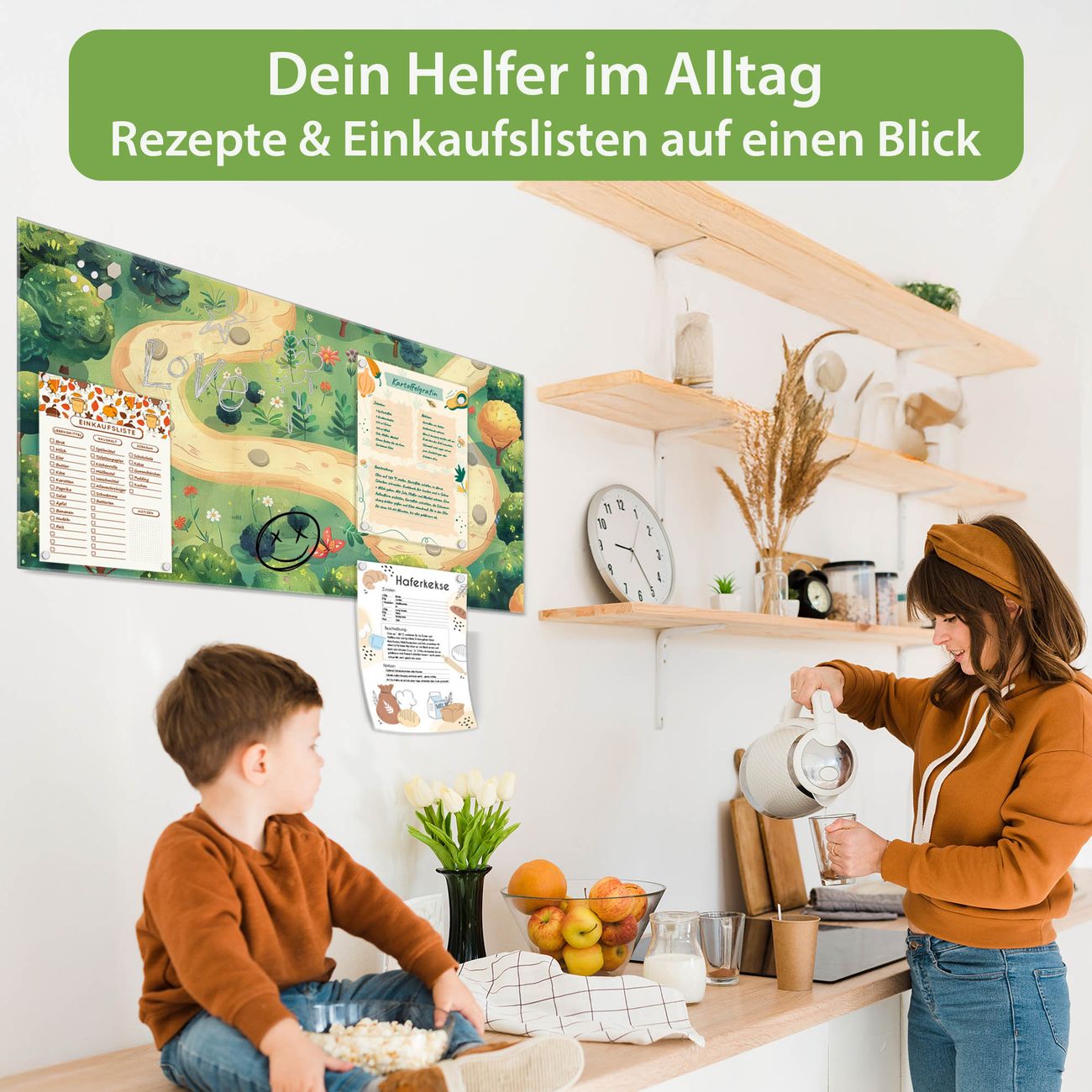 Auf der glatten Glasoberfläche lassen sich Termine, Rezepte oder Notizen ganz einfach mit Kreidestiften festhalten und rückstandslos entfernen. Starke Neodym-Magnete halten Ihre wichtigsten Erinnerungen sicher an Ort und Stelle. So entsteht Ihre ganz persönliche Ideenwand - jeden Tag neu.