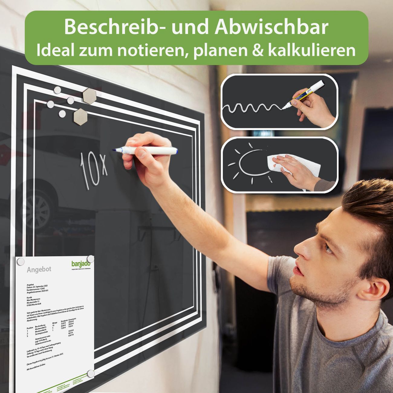Glas Magnettafel im Querformat Motiv Weißer Rahmen 2