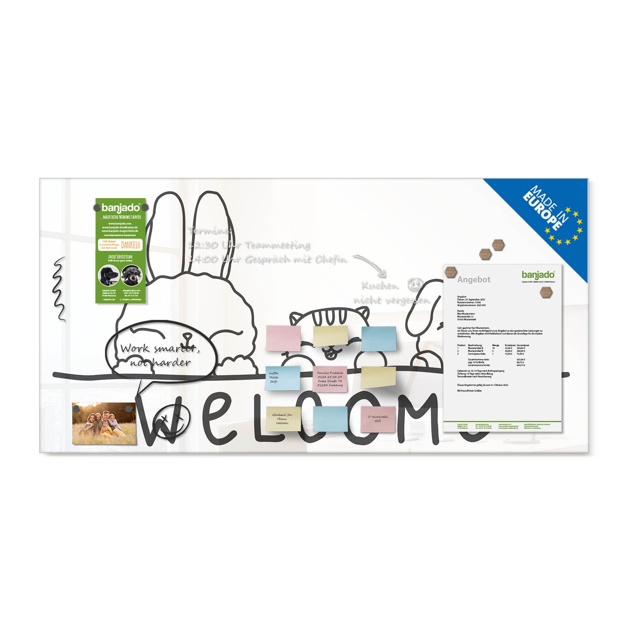 Glas Magnettafel im Querformat Motiv Willkommensfreunde