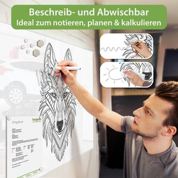 Die banjado Glas Magnettafel mit dem Motiv Motiv Wolf 2 verbindet Funktionalität mit Stil. Sie ersetzt das Zettelchaos durch klare Strukturen und bringt dabei eine warme, natürliche Atmosphäre in Ihr Zuhause. Ob im Büro, in der Küche oder im Eingangsbereich - dieses Design-Board zieht Blicke an und sorgt für Ordnung mit Charakter.