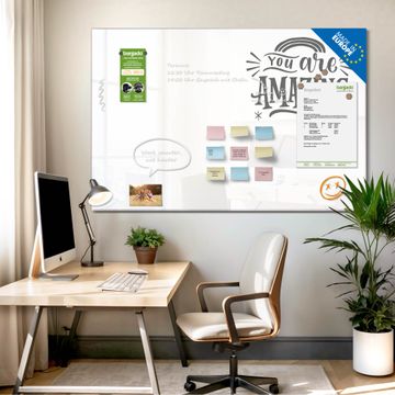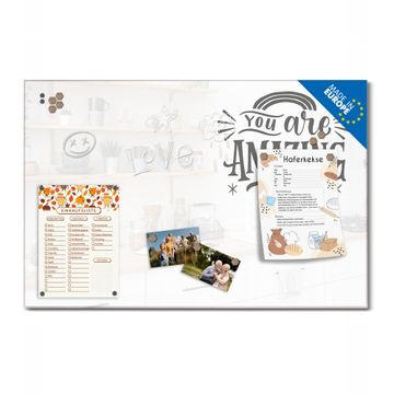 Auf der glatten Glasoberfläche lassen sich Termine, Rezepte oder Notizen ganz einfach mit Kreidestiften festhalten und rückstandslos entfernen. Starke Neodym-Magnete halten Ihre wichtigsten Erinnerungen sicher an Ort und Stelle. So entsteht Ihre ganz persönliche Ideenwand - jeden Tag neu.