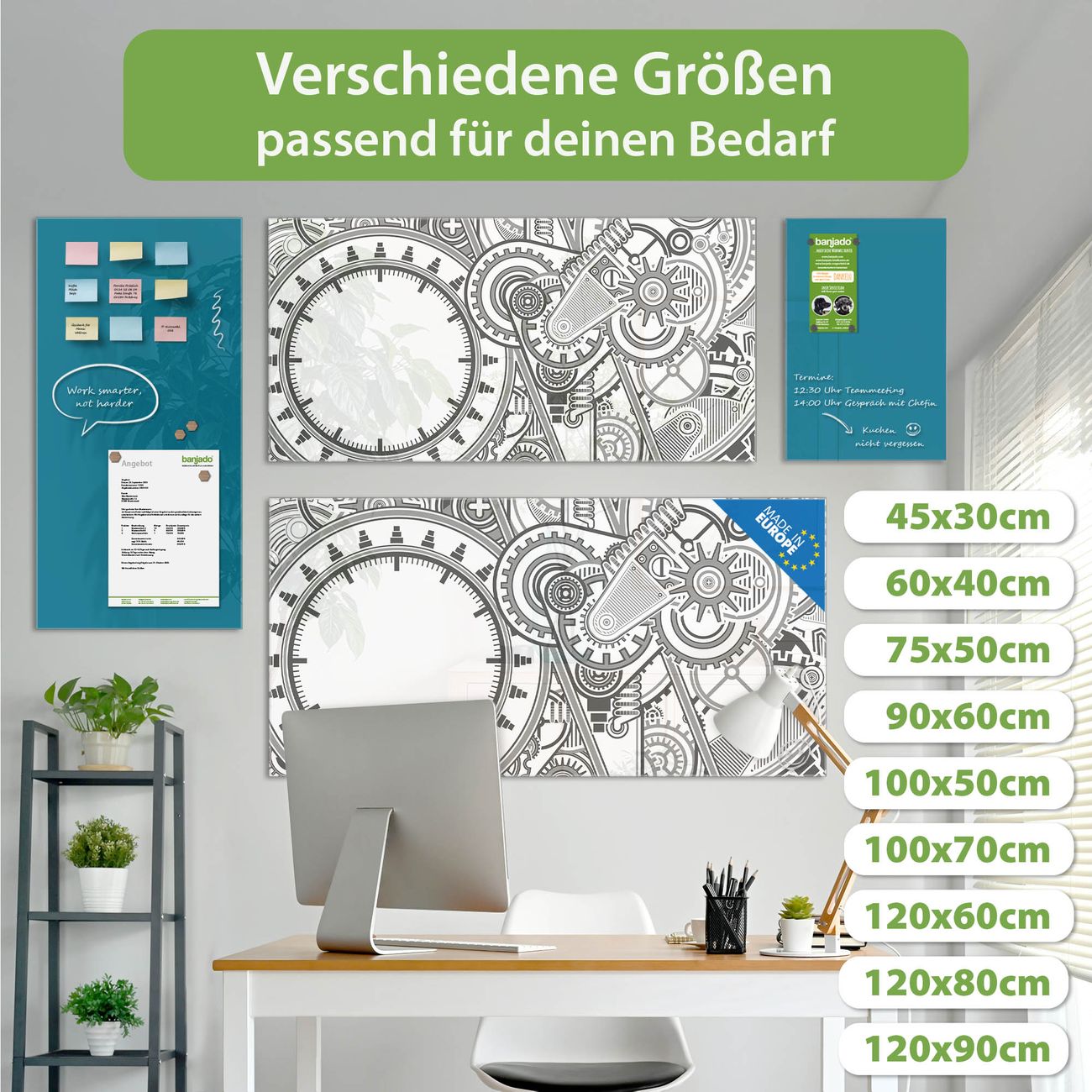 Jede Glas Magnettafel wird in unserer Werkstatt von Hand gefertigt und sorgfältig geprüft. So erhalten Sie ein echtes Qualitätsprodukt, das Funktion und Ästhetik perfekt vereint.?? Warum banjado?
