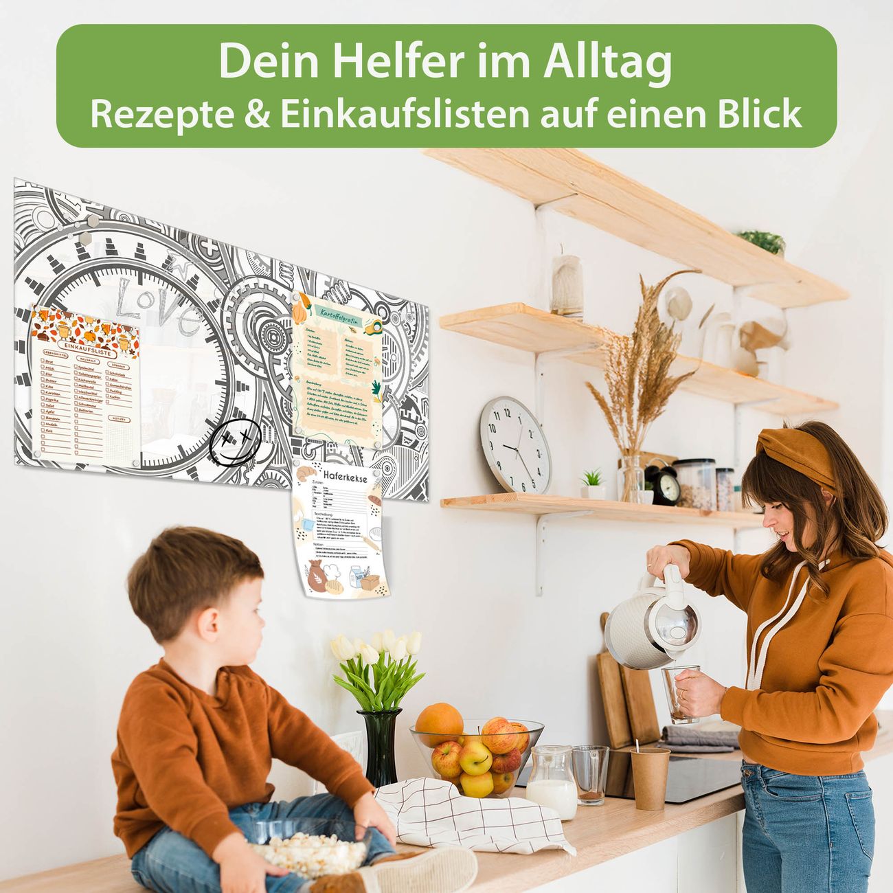Auf der glatten Glasoberfläche lassen sich Termine, Rezepte oder Notizen ganz einfach mit Kreidestiften festhalten und rückstandslos entfernen. Starke Neodym-Magnete halten Ihre wichtigsten Erinnerungen sicher an Ort und Stelle. So entsteht Ihre ganz persönliche Ideenwand - jeden Tag neu.